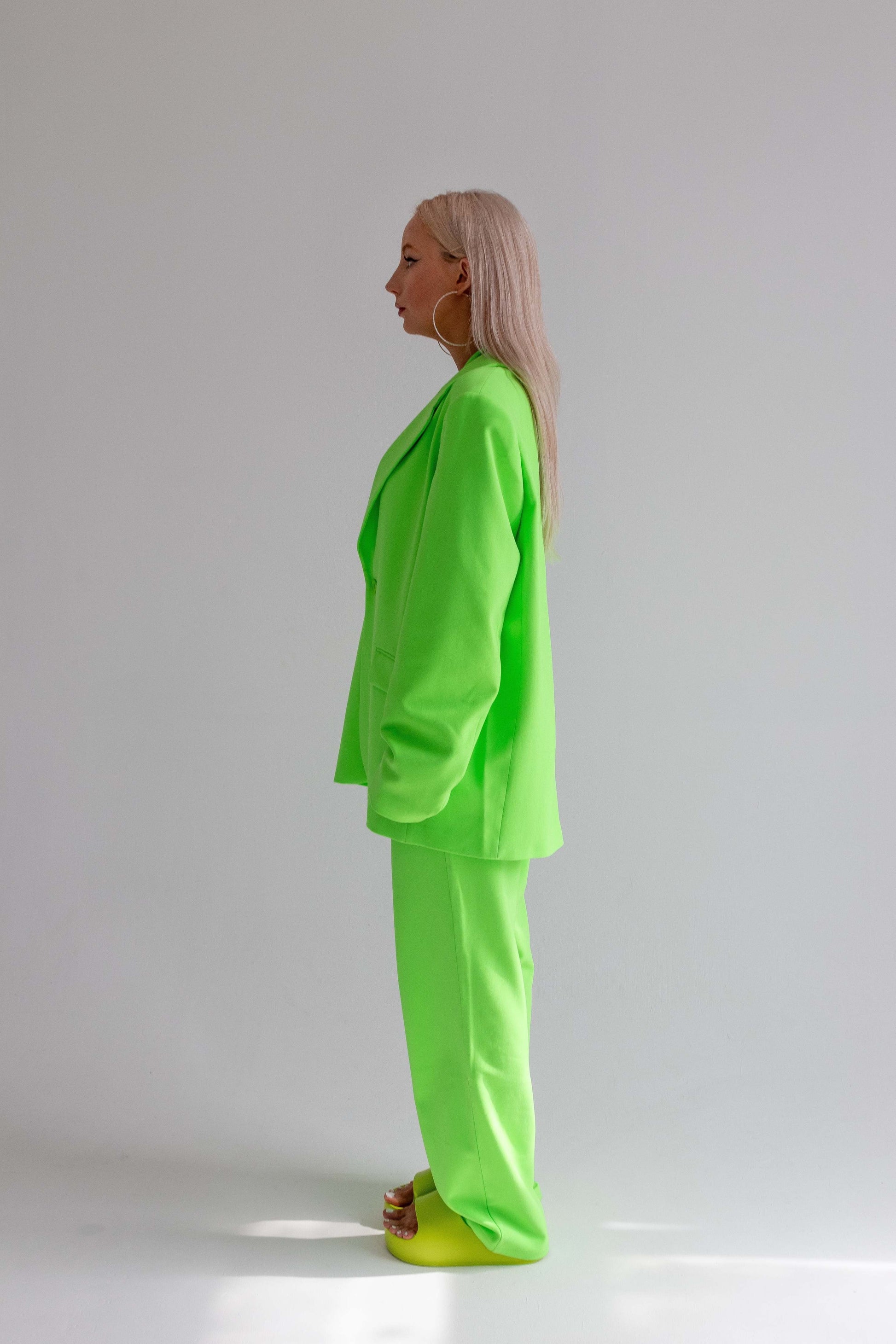 Our 'NANE Blazer is an oversized fit with a masculine silhouette that compliments your body structure. Our Key Lime Green Blazer will make you look and feel powerful where ever you are.